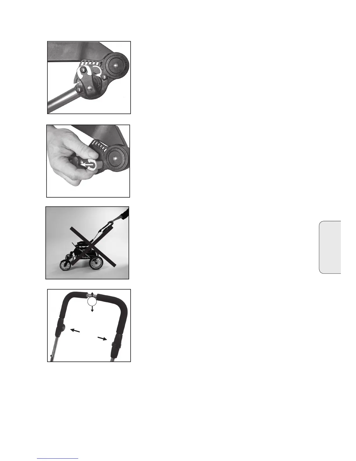 • Adjust the handle by pressing the grey buttons on the inside of the