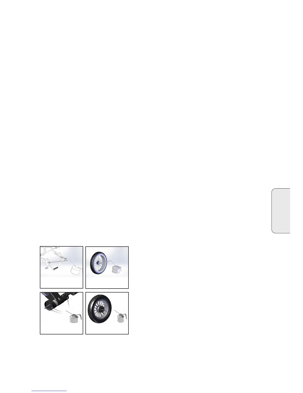 • It is recommended to lubricate the wheel axles and suspension system every three months (clean axles