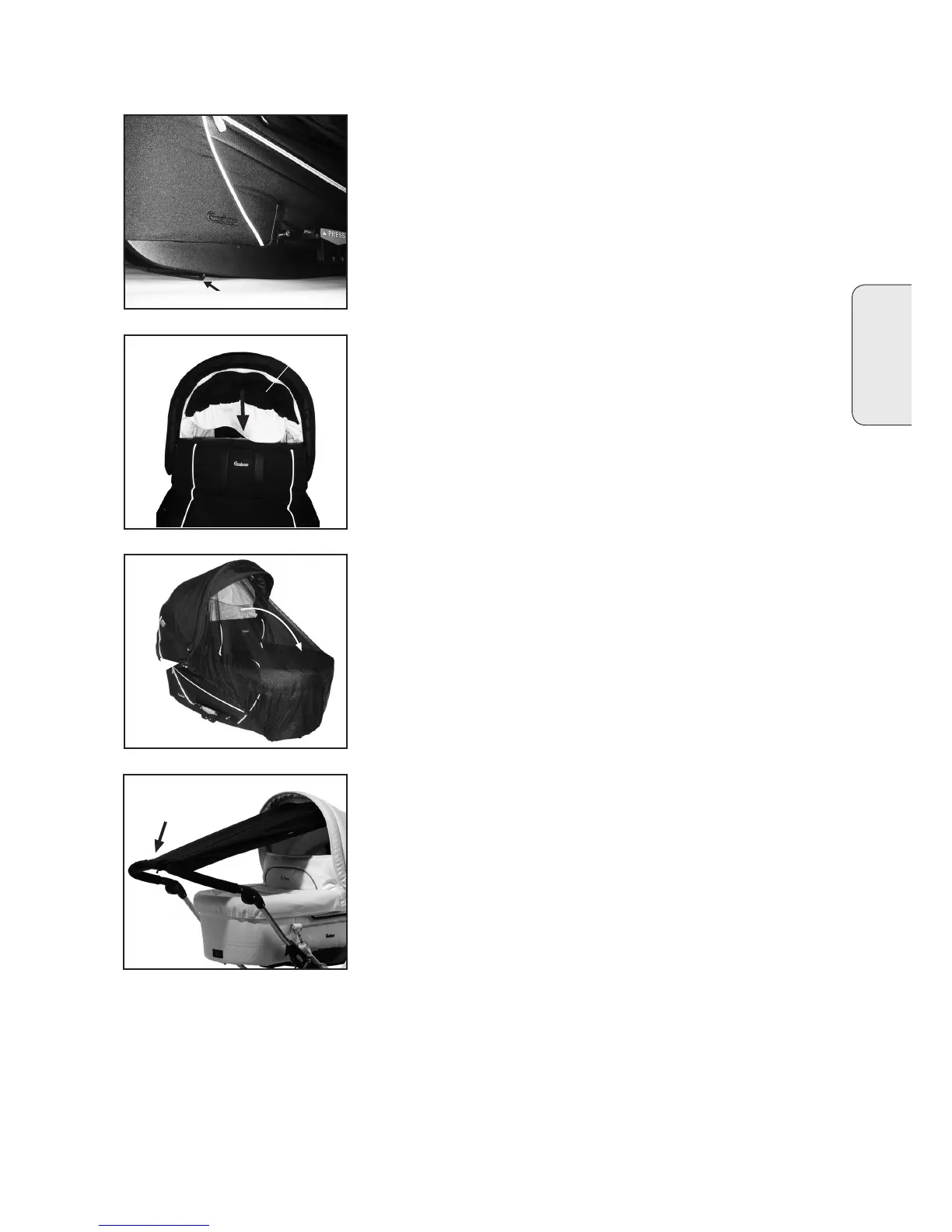 sufetten och ligg- eller sittdelen. Observera att regnskyddet är