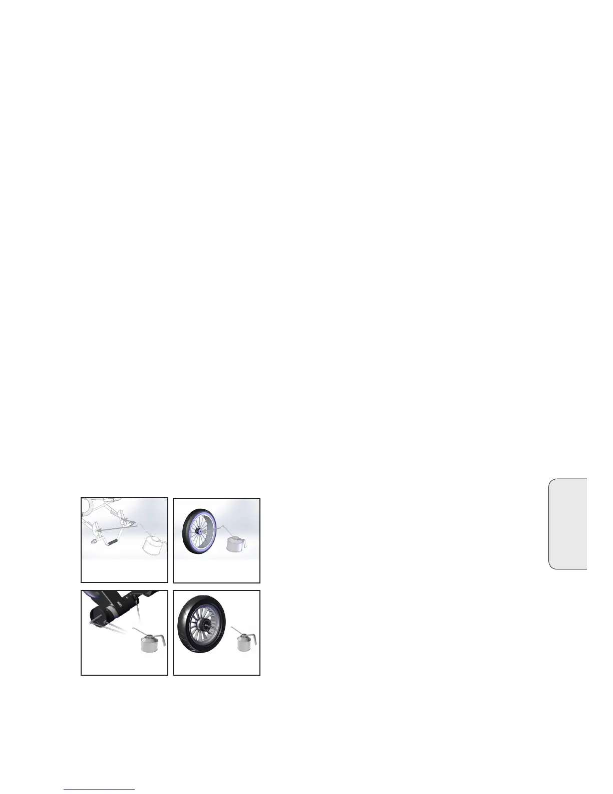 • Rengør regelmæssigt stel og vognens metaldele – aftør dem og smør alle led og nitter. Stel, fælge og