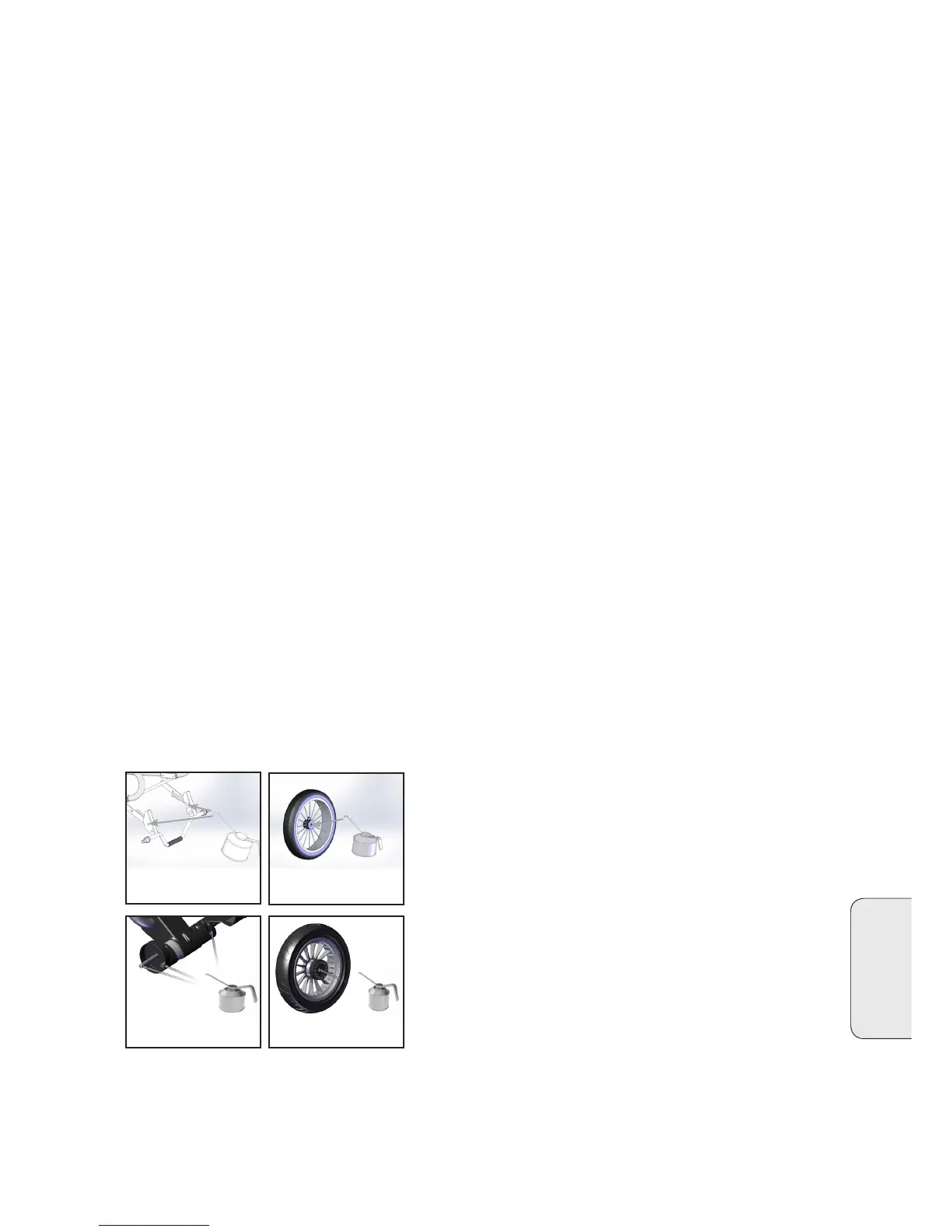 • Rengjør jevnlig understellet og vognens metalldeler – tørk av de og smør alle ledd. Felger og eiker på