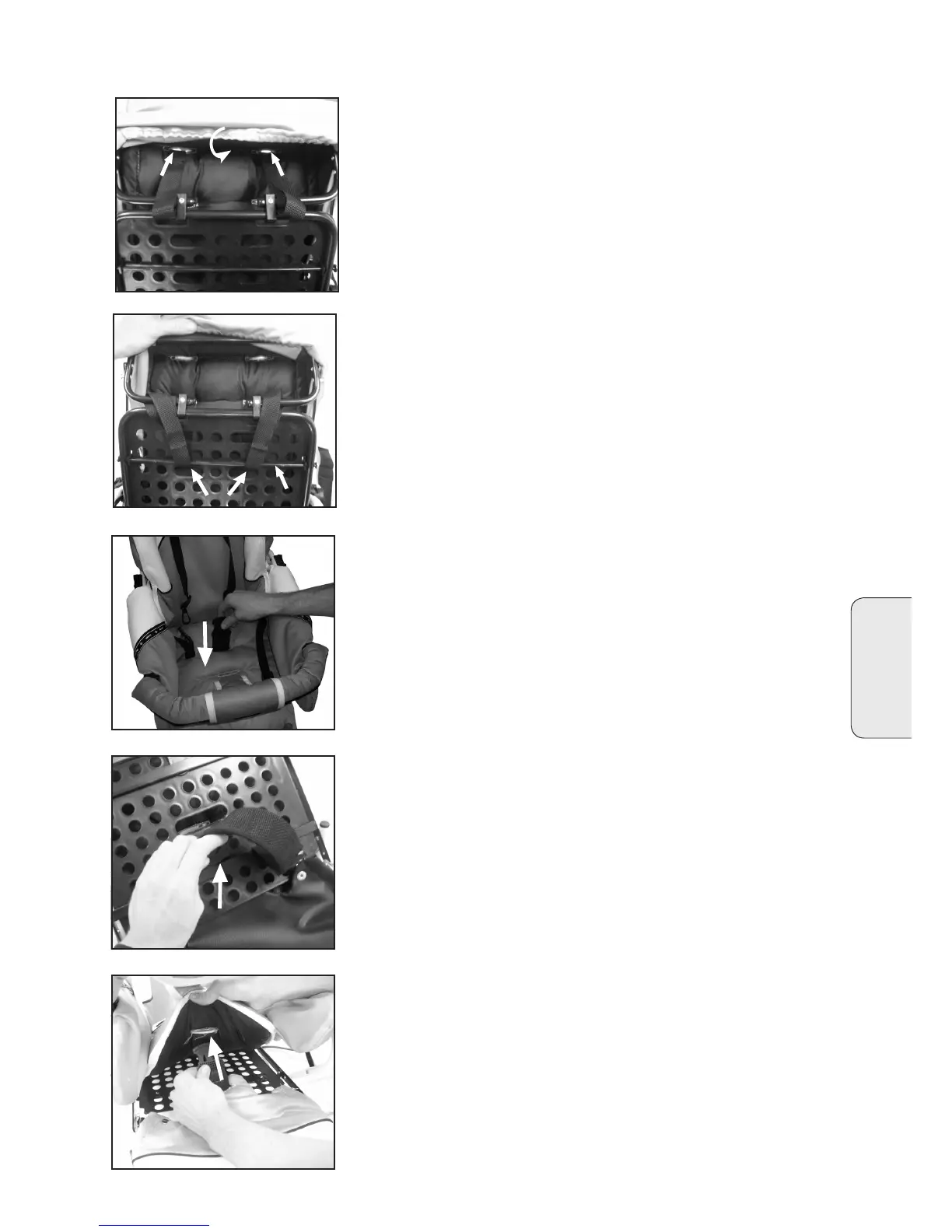 dirželį ištraukite per austinę medžiagą, kojyčių atramos uždangalą ir