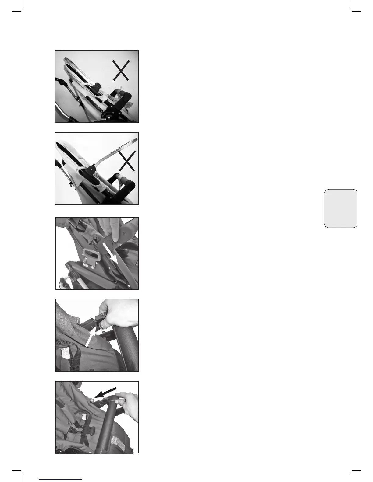 • Sēdekļa pievienošana Ieslēdziet stāvbremzi: paceliet sēdekli uz