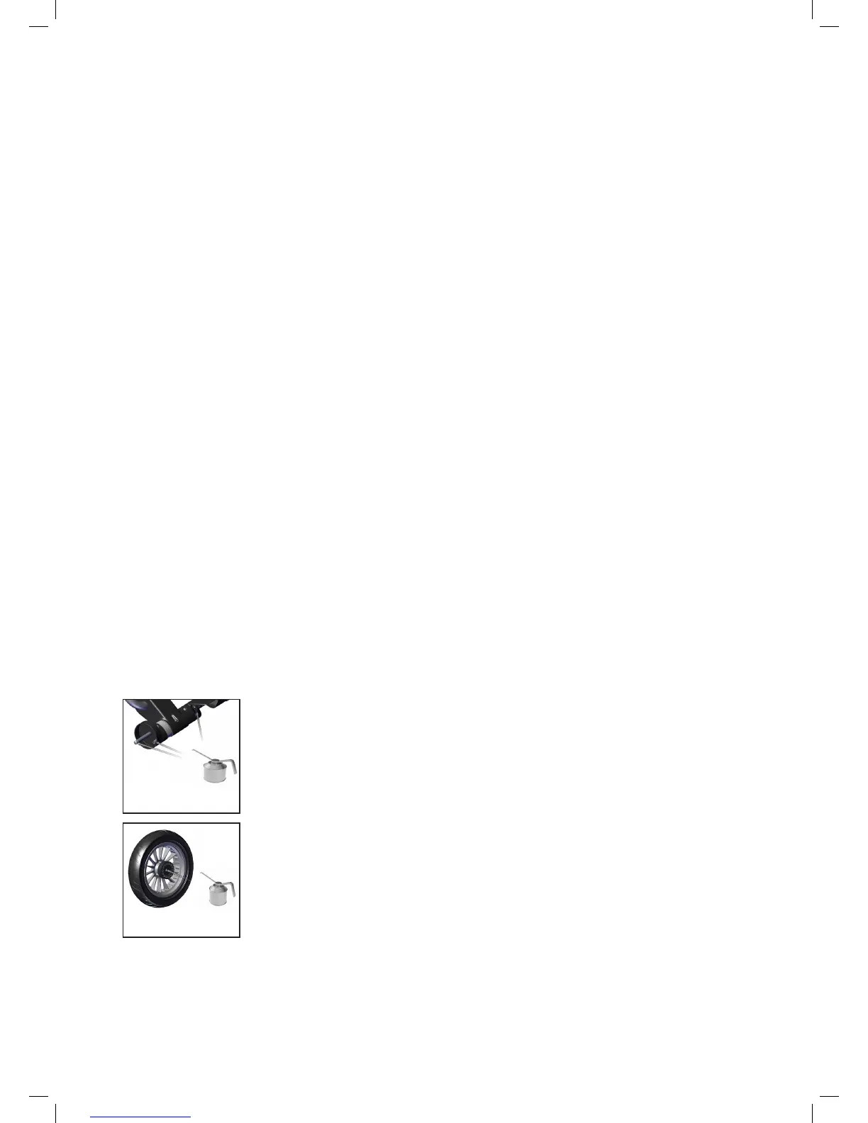 • Es recomendable lubricar los ejes de las ruedas y el sistema de suspensión cada tres meses (limpie los