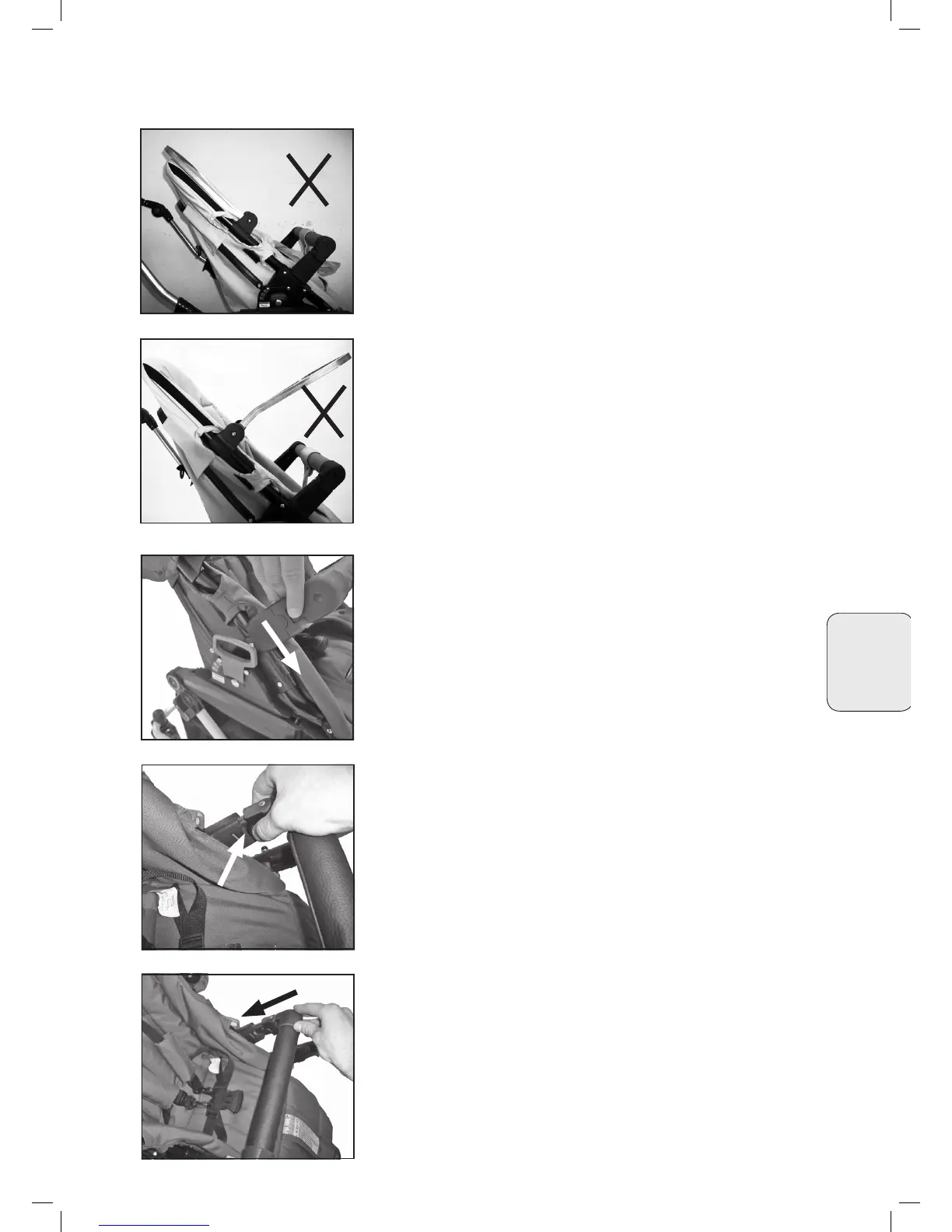 • Visada įsitikinkite, kad vežimėlio atlošas yra saugioje padėtyje,
