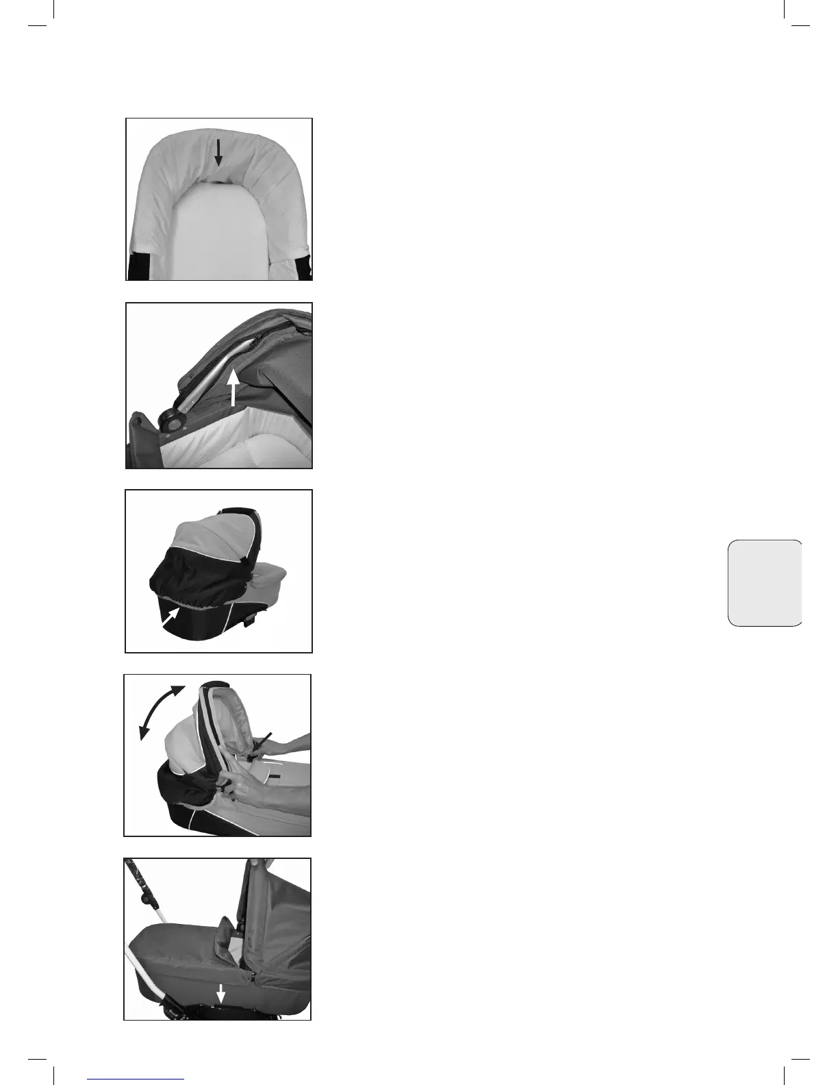 • Pritvirtinkite gaubtą lipukais lopšio priekyje. (11)