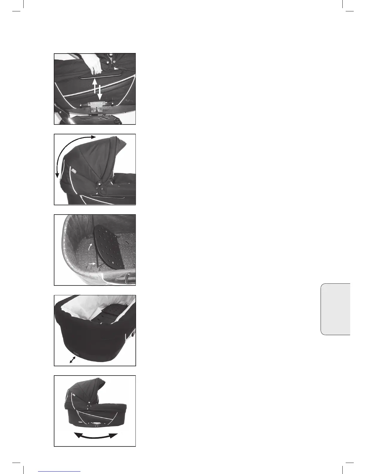 • Overdelen kan bruges som vugge (6) indendørs på et lige og plant