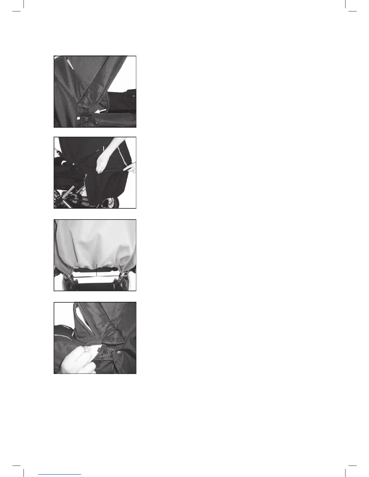 Træk fodposen ud over fodstøtten op mod kalechen. Fastgør den