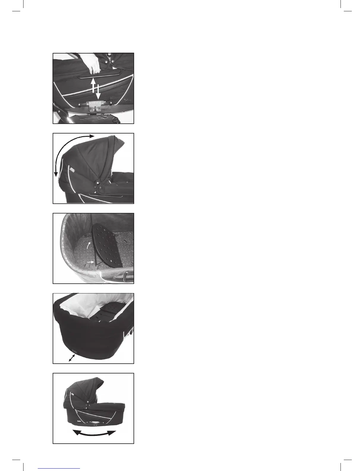 • Liggdelen kan användas som en vagga (6) inomhus på ett jämt