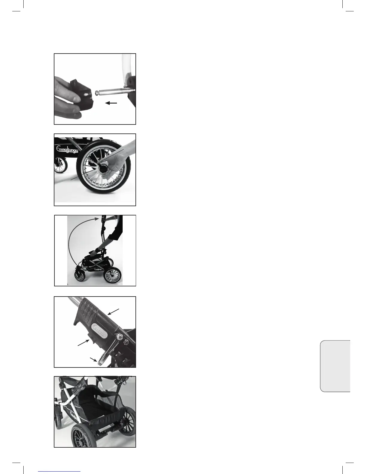 • Kontroller at hjulet sitter ordentlig fast og at det ikke kan trekkes av.