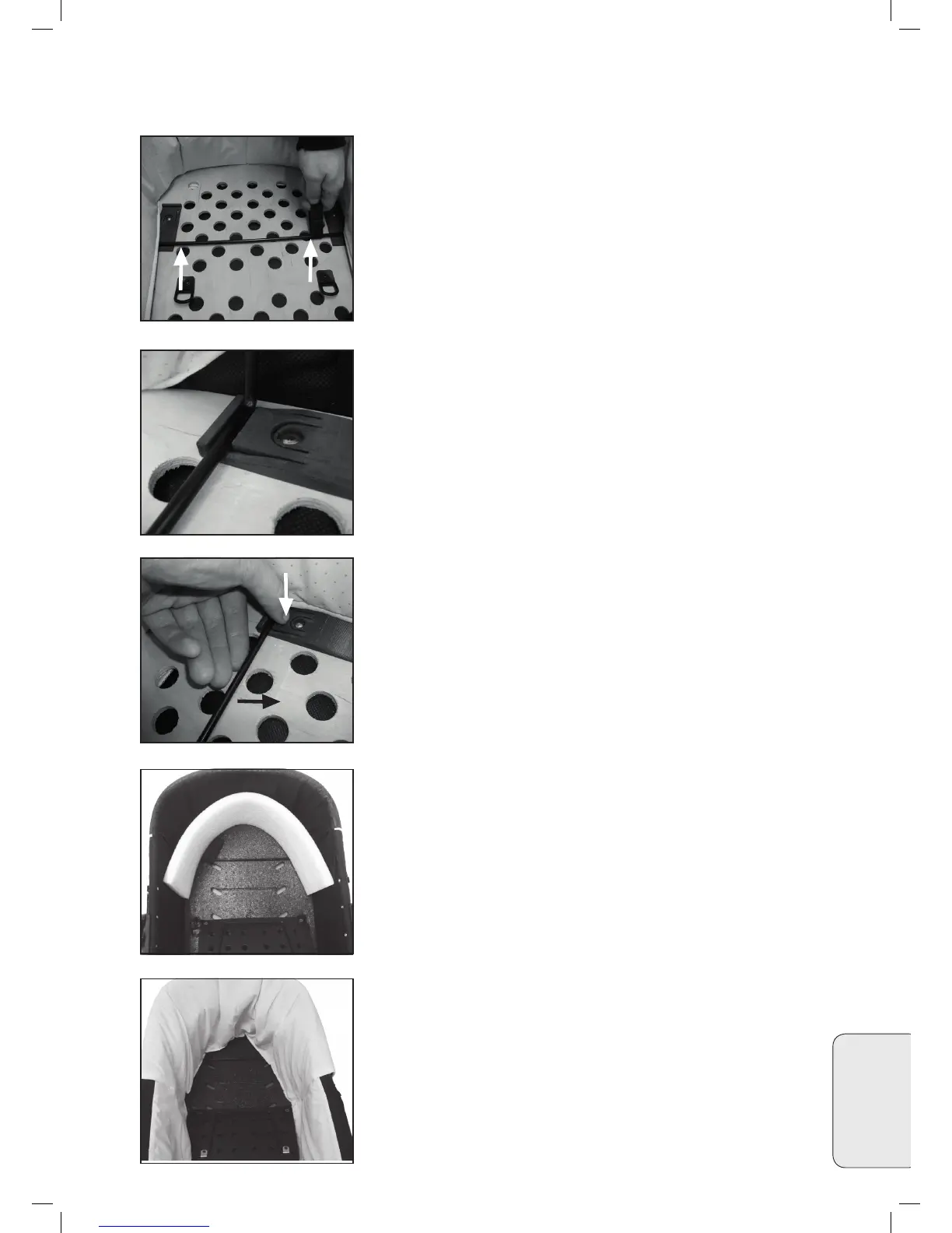 • Pujota vuorikangas kopan reunojen yli. Kiinnitä tarranauhat (7)