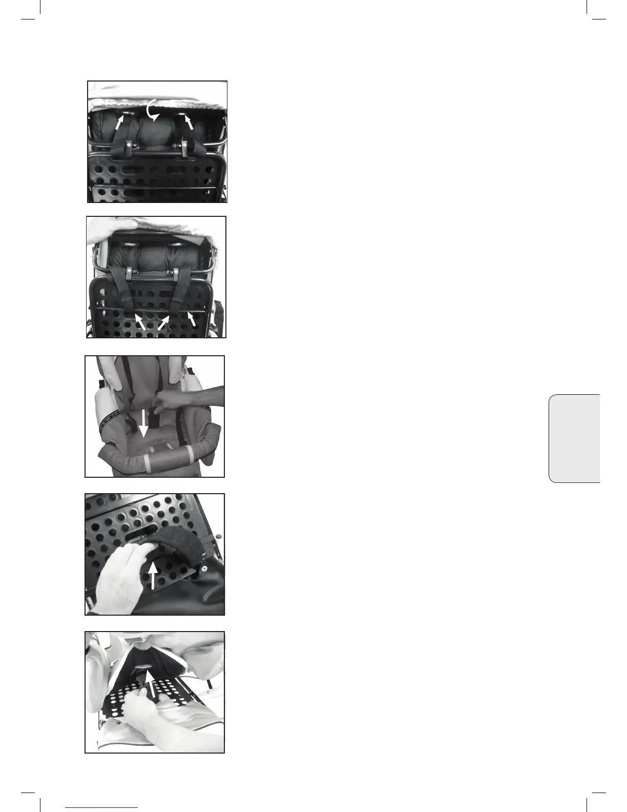 • Kai tarpukojo dirželis naudojamas vidinėje arba išorinėje padėtyje, jį