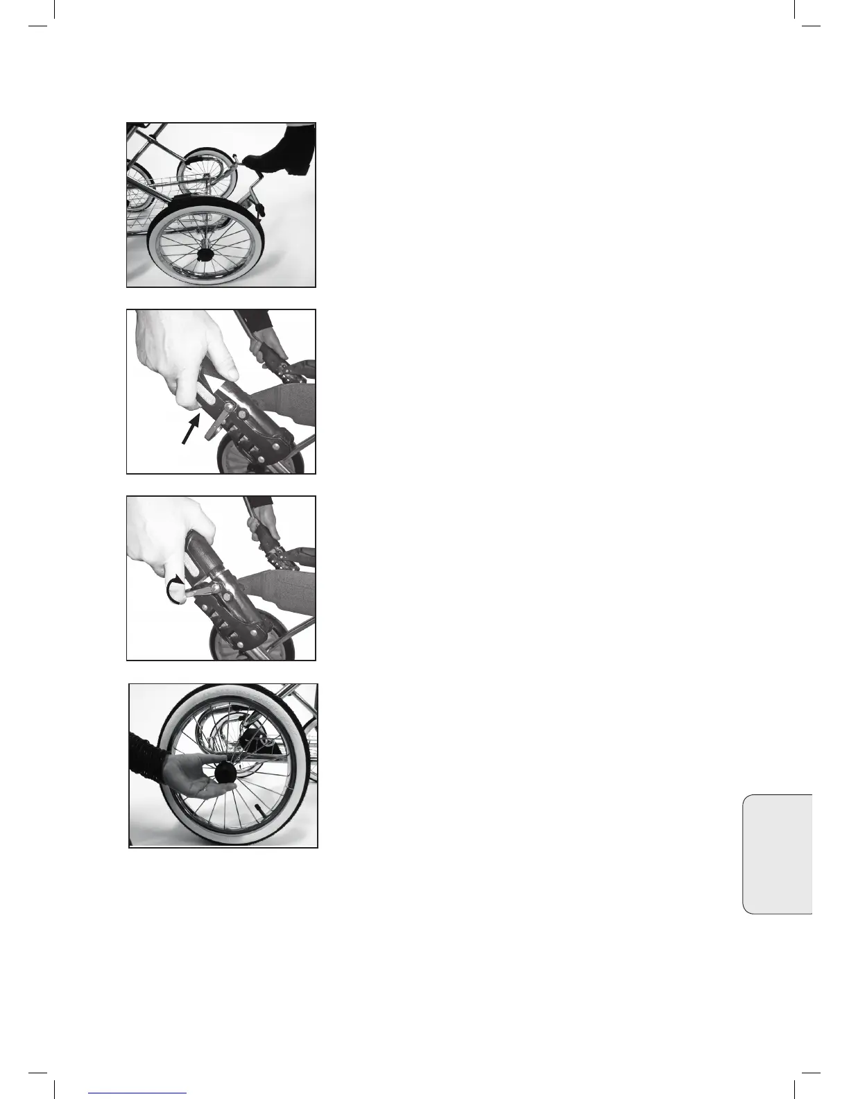колеса, нажимая на кнопку фиксатора на каждой ступице и