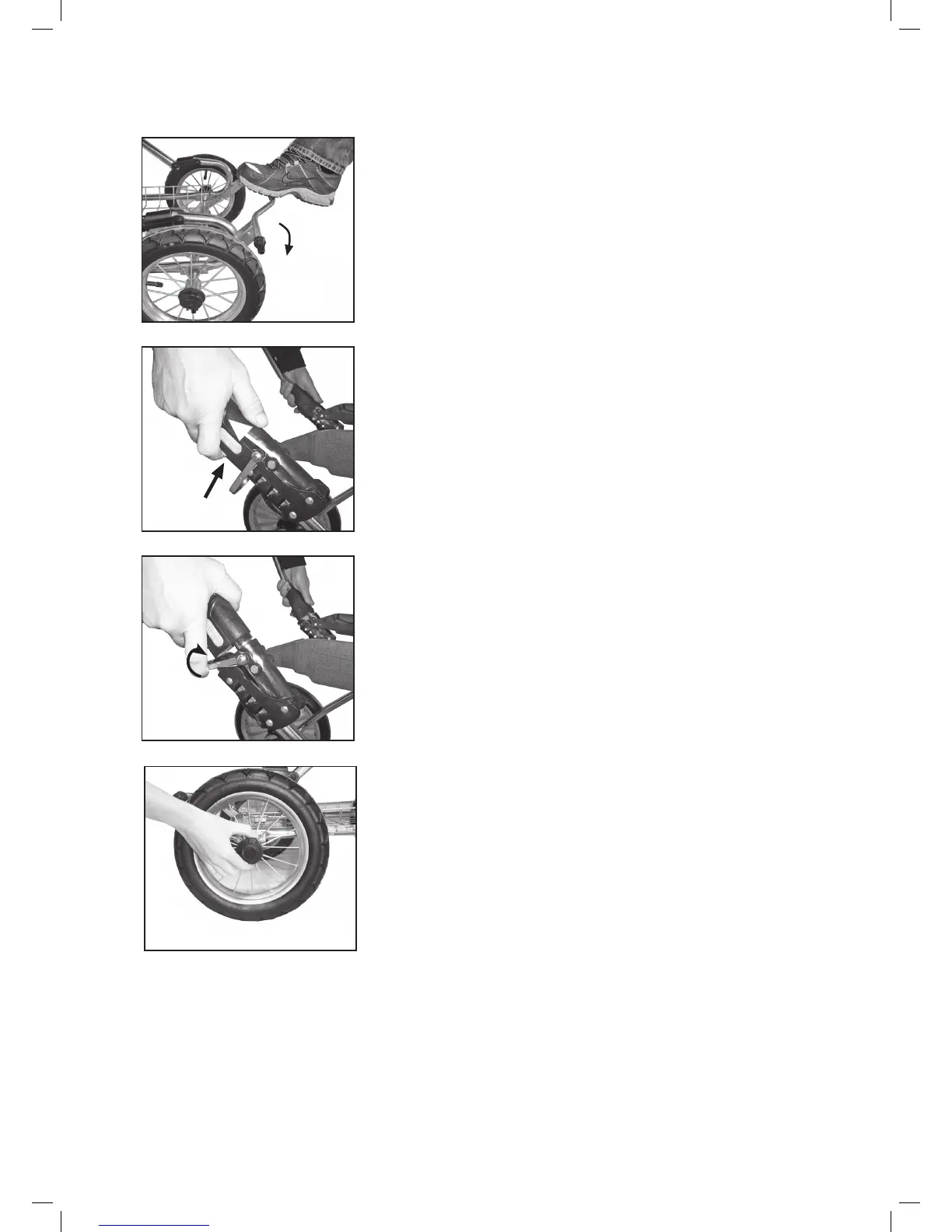 • Aby byl podvozek ještě kompaktnější, demontujte kolečka stisknutím