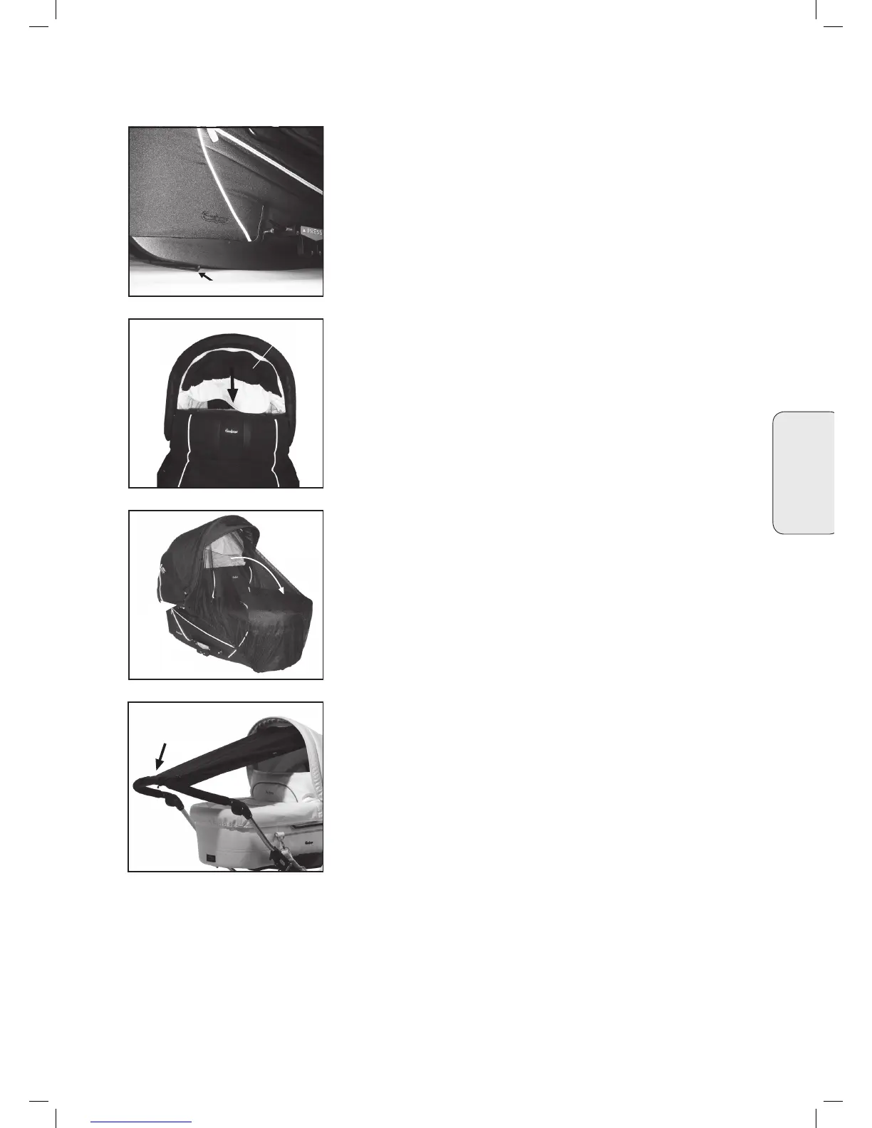 • Sie montieren den Regenschutz, indem Sie Ihn über das Verdeck