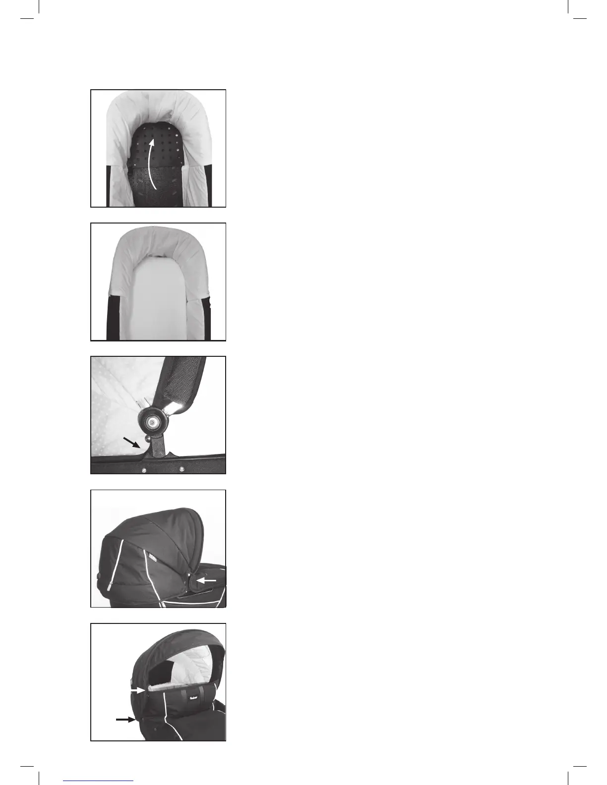 • Attach the hood to the pram body by pushing the plastic leg of the