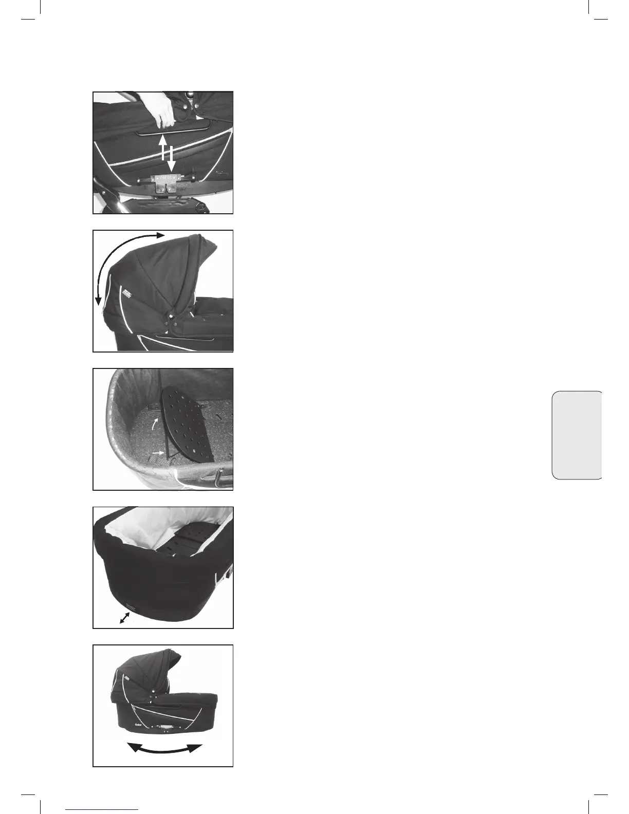 • Never use pram body as a cradle outdoors or on uneven surfaces.