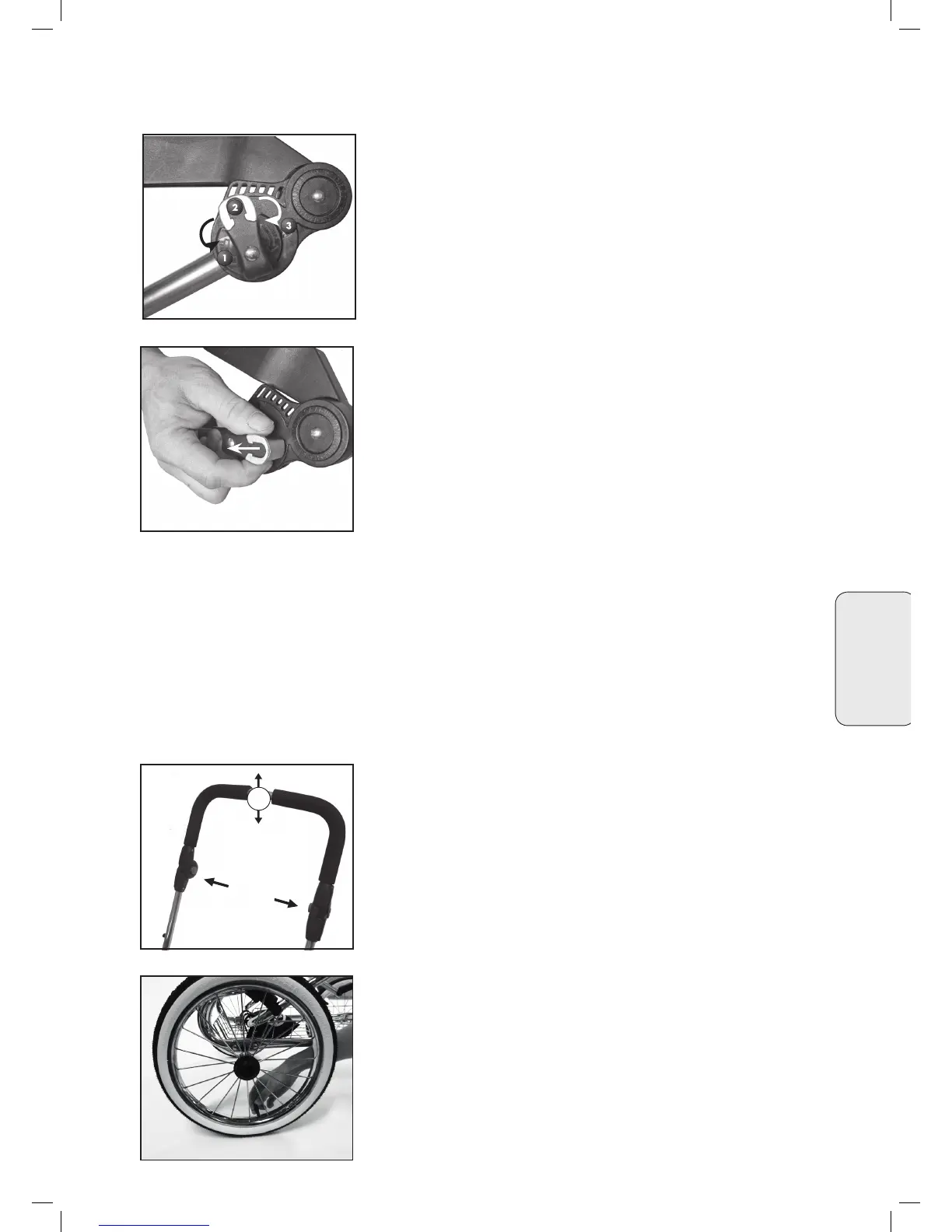 • Adjust the handle by pressing the grey buttons on the inside of the