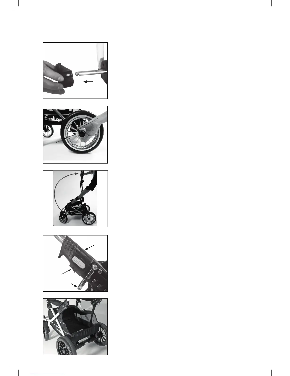 • Z osi podwozia wózka należy zdjąć plastikowe osłonki.
