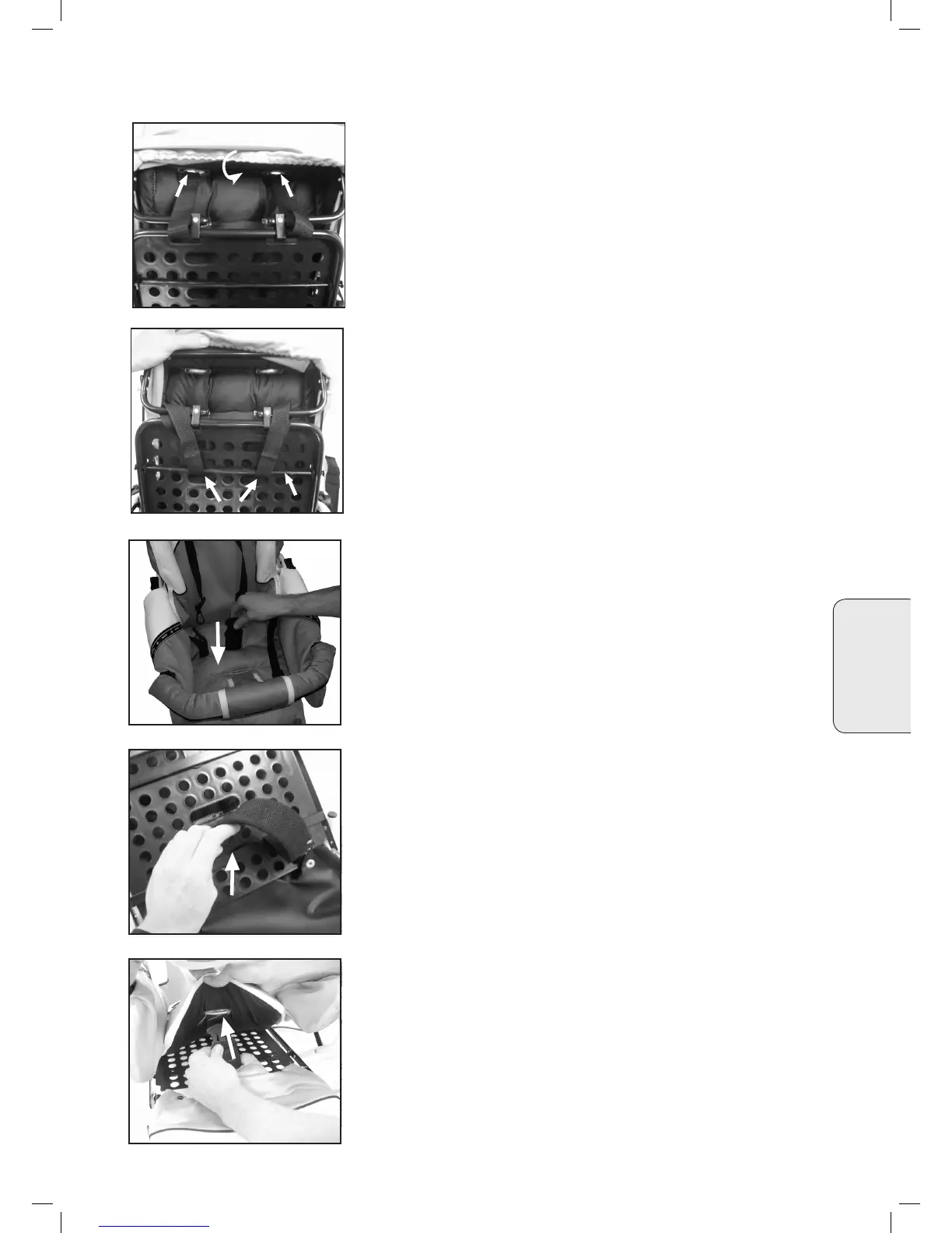 • Tvirtindami dirželius per apatines skyles, dirželius būtinai nutieskite