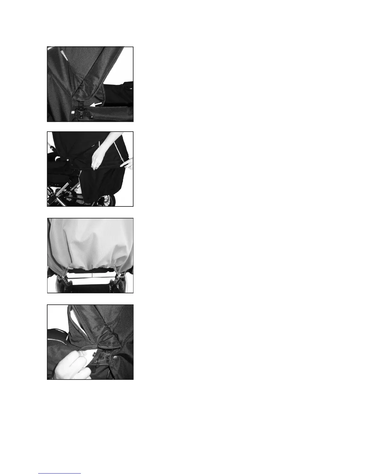 • Fastgør kalechen med trykknapperne på begge sider.
