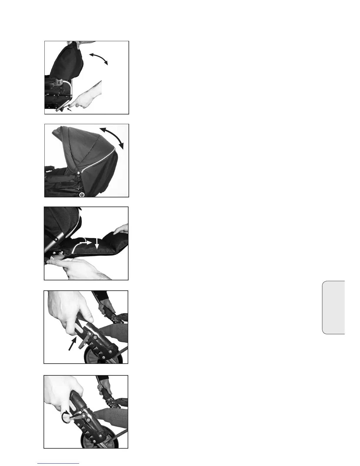 • Kontroller at stoffet ikke hænger fast mellem håndtag og klapvogns-