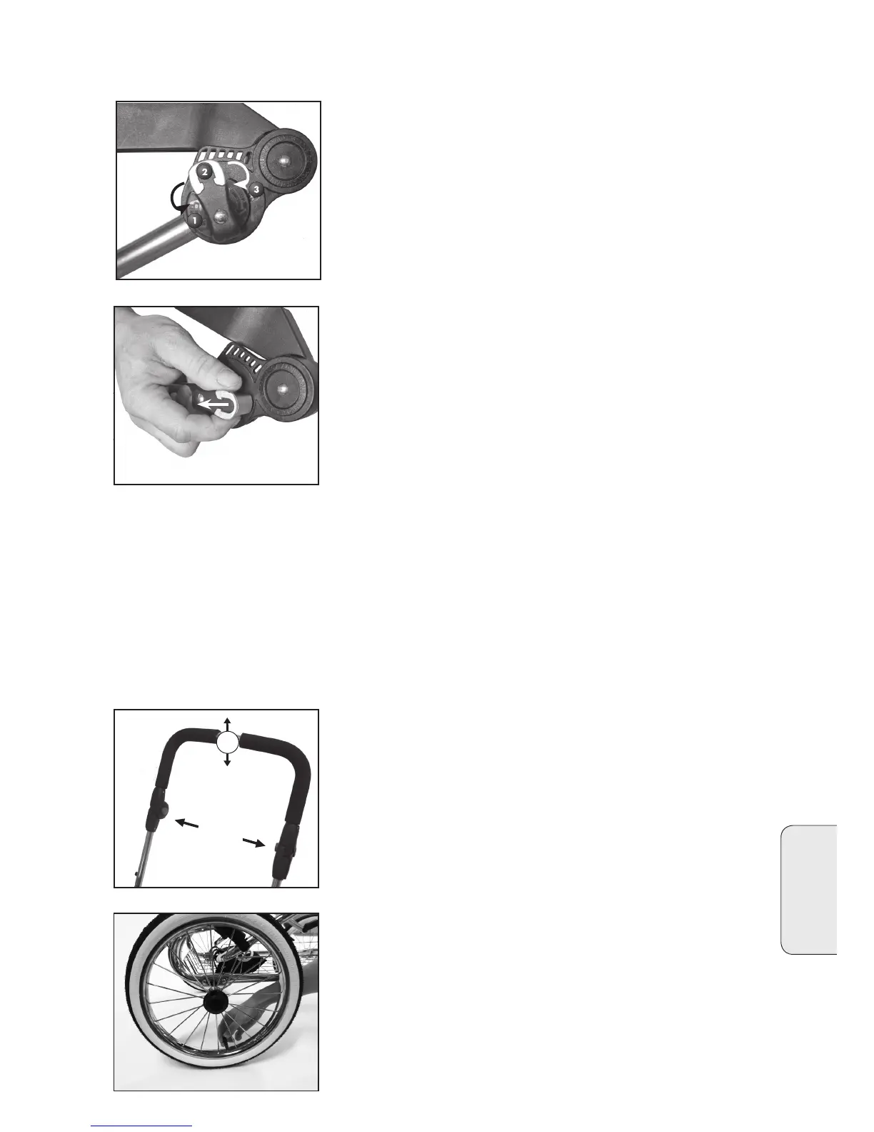 • Juster høyden ved å samtidig trykke inn de grå plastknappene(2)