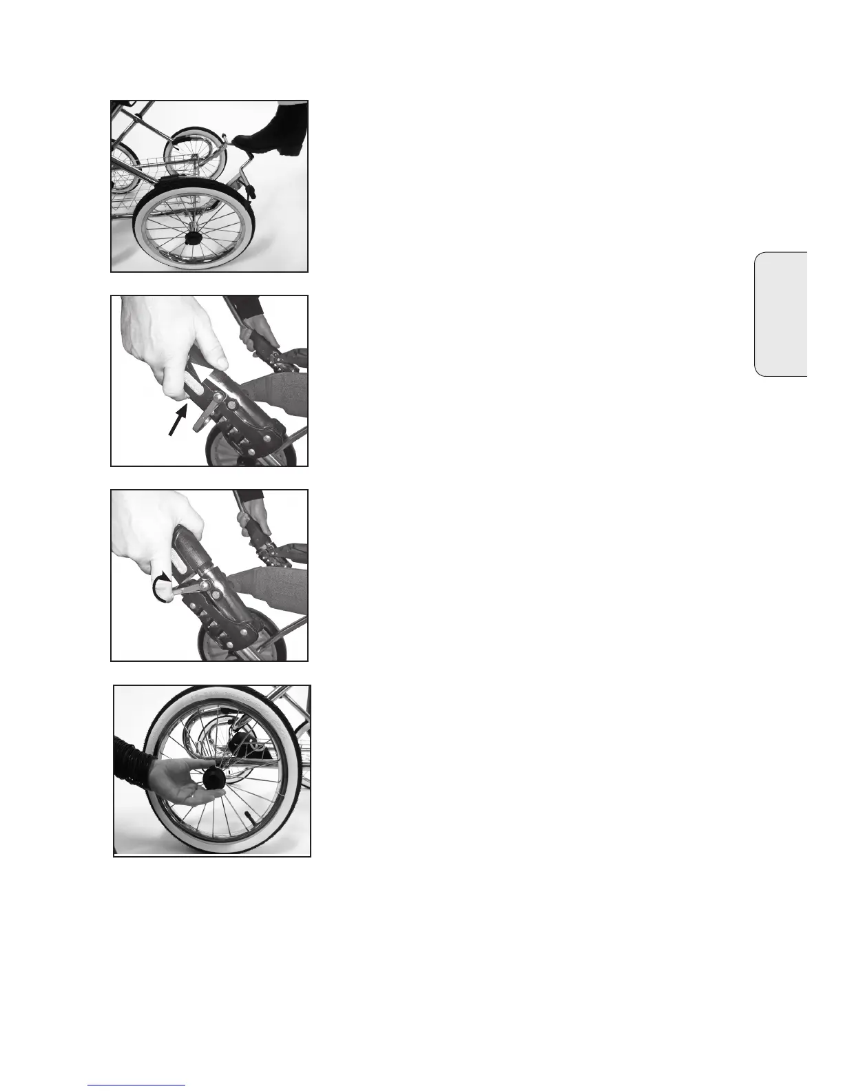 • Låt framhjulen rotera fritt genom att föra upp låsringen