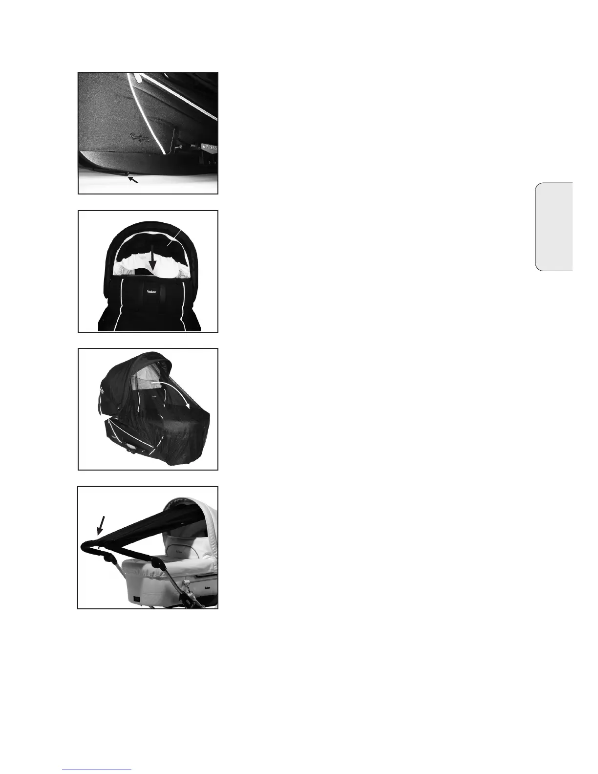 • Tõmmake võrk alla ja ümber põlle esiosa (9). Ühendage sääsevõr-
