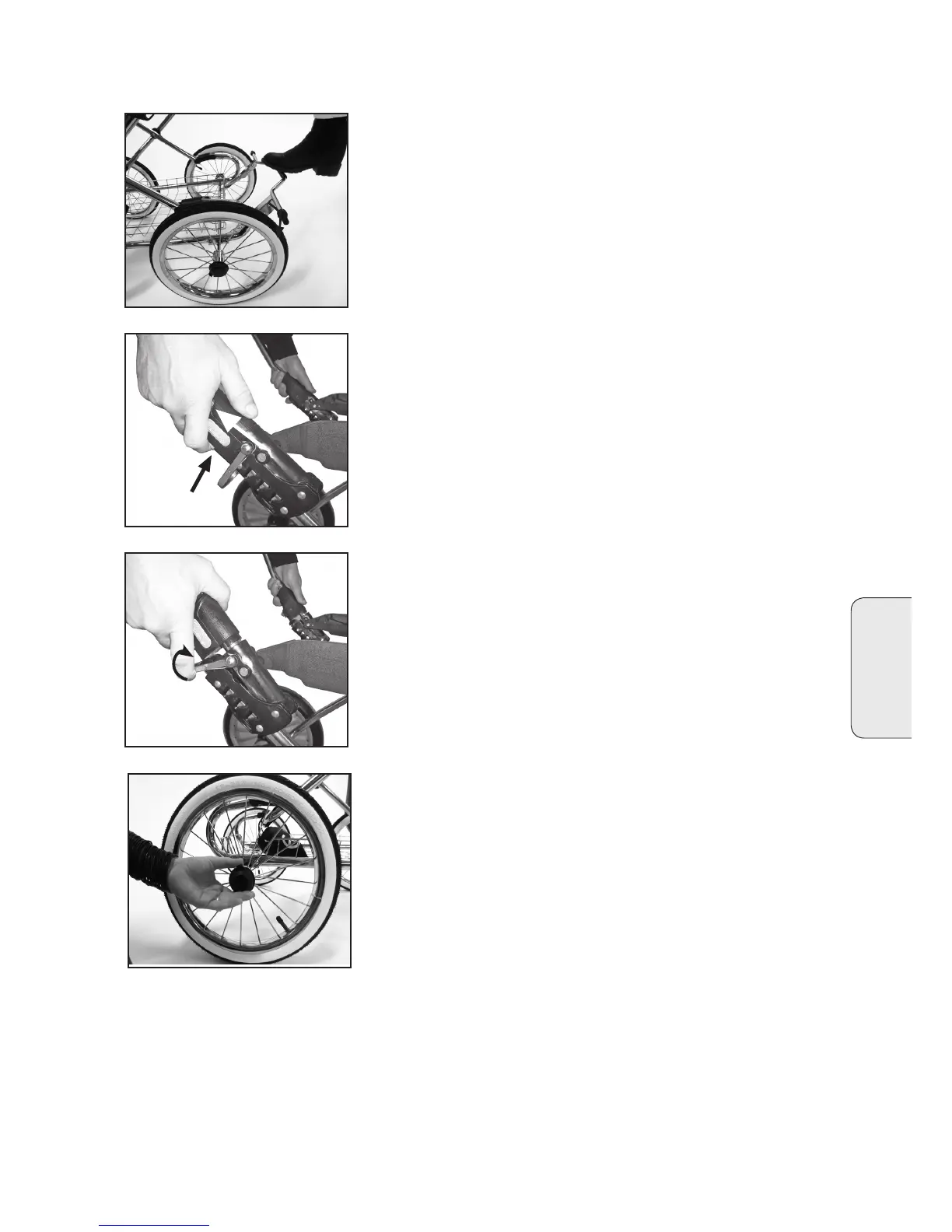 • Kad važiuoklė užimtų dar mažiau vietos, nuimkite ratus: pas-