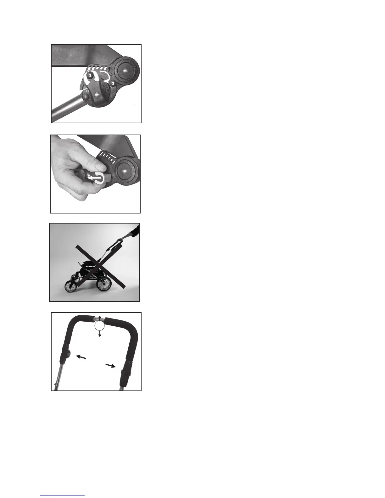 • Niekada netraukite vežimėlio, kai priekiniai pasukami ratai yra už