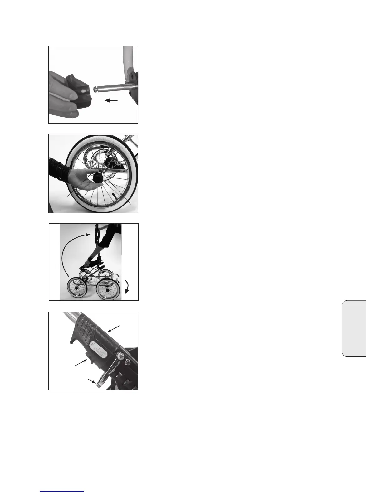 • Z osi podwozia wózka należy zdjąć plastikowe osłonki. Osłonki te