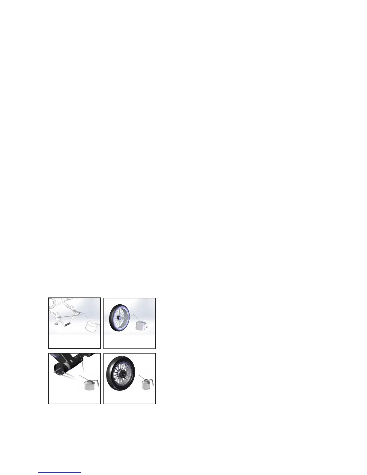 • Je doporučeno každé tři měsíce promazat osy koleček a systém odpružení (před mazáním očistěte osy