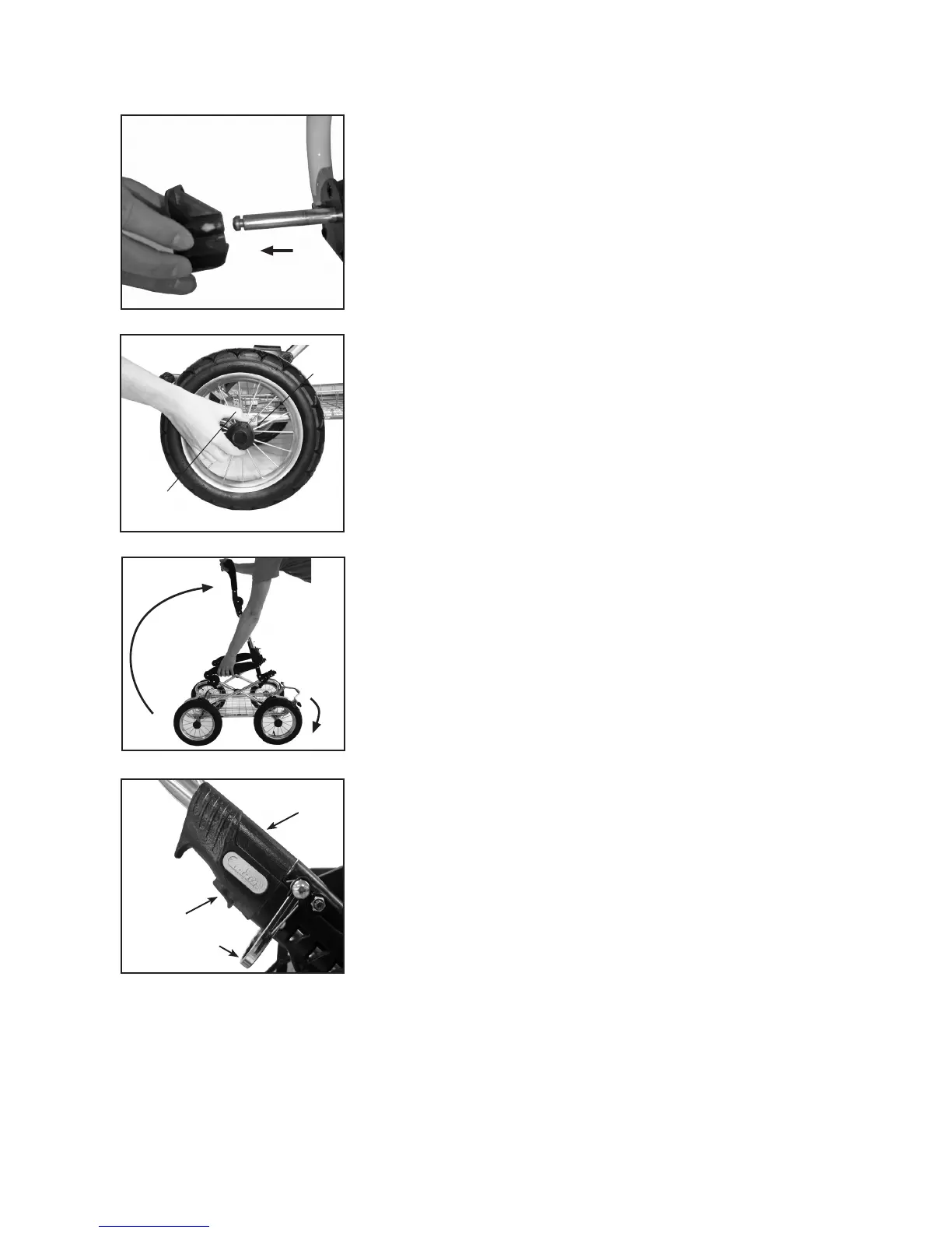 rueda hasta el fondo del eje (2). Suelte el botón y tire de la rueda