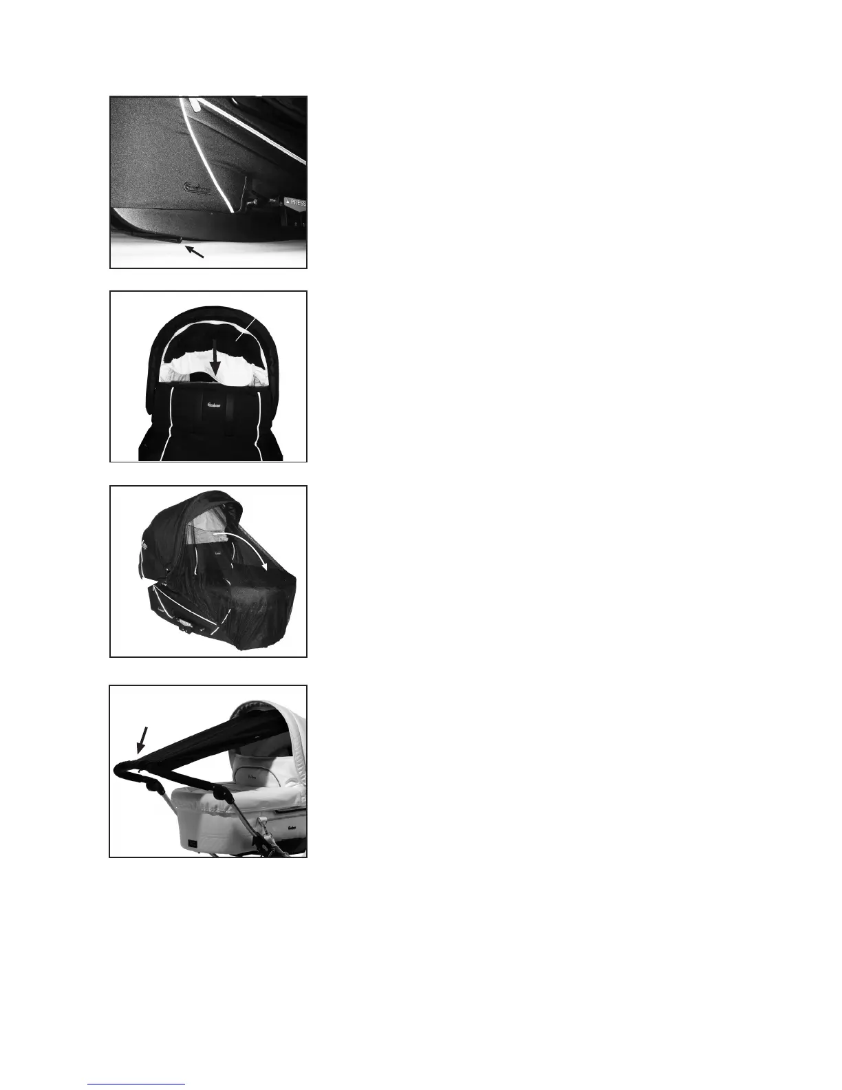 • Attach the insect net using the press stud on the inside of the hood