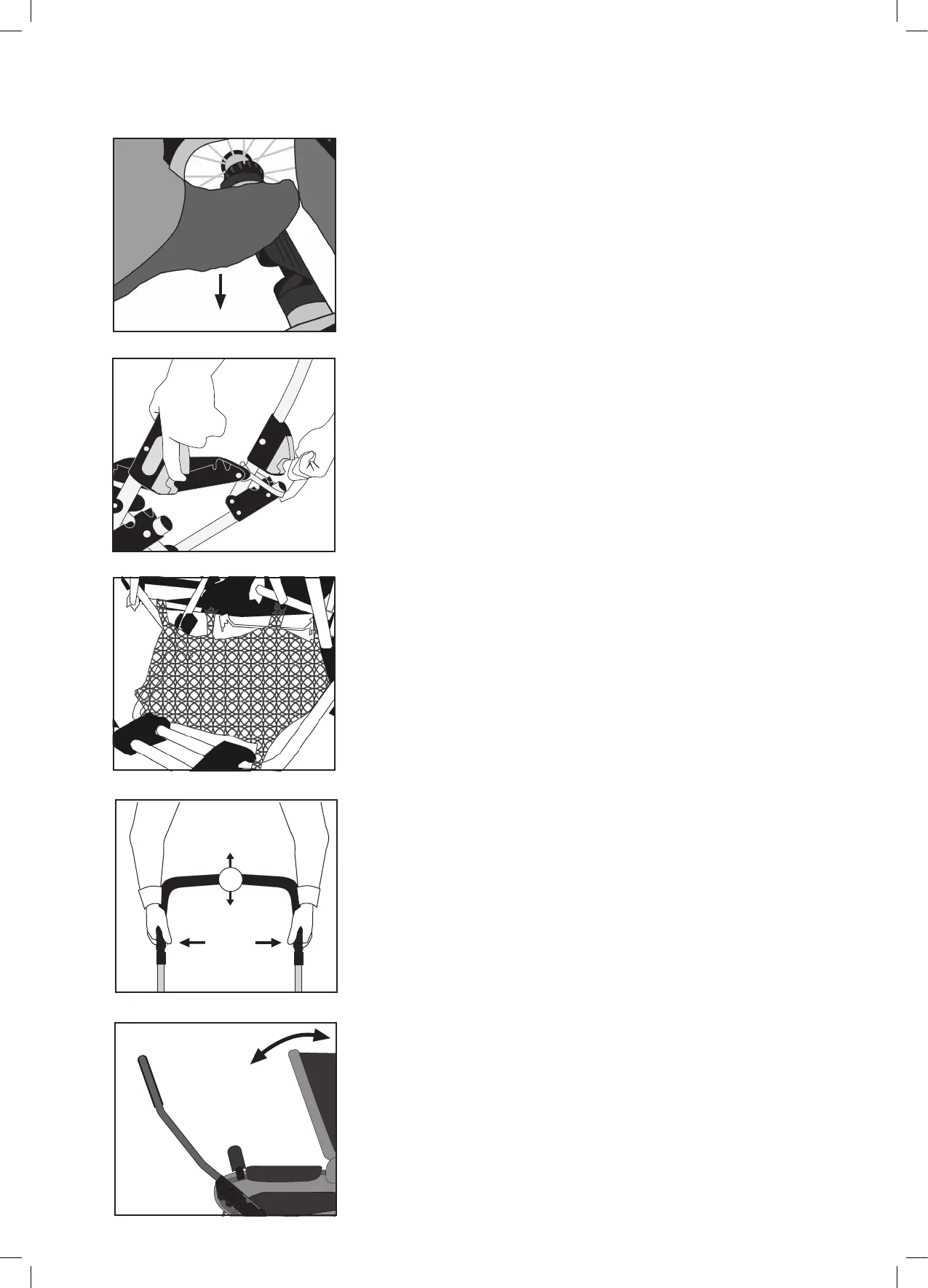 • Sjekk at tekstilen ikke fester seg mellom handtak og sportsvogndel.