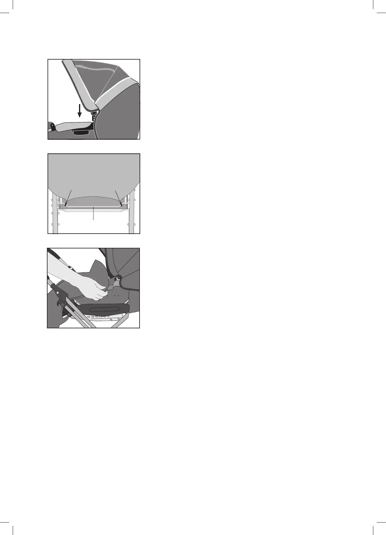 • The raincover is attached by placing the raincover over the carrycot