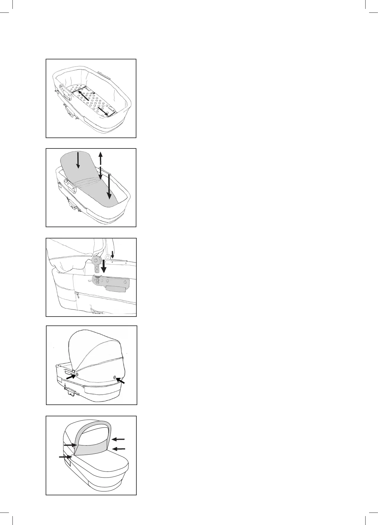 • Attach the hood to the pram body by pushing the plastic leg of the