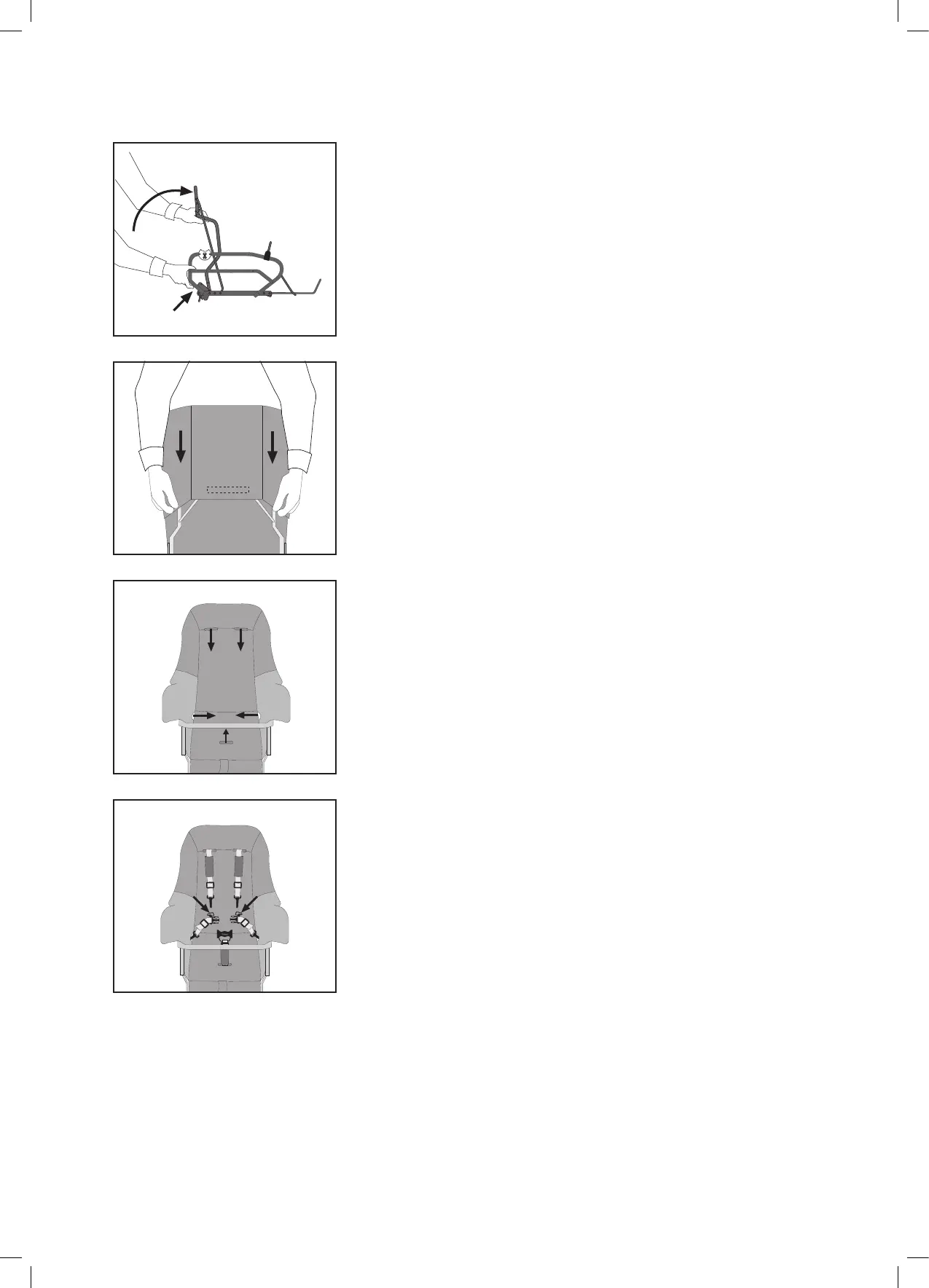 • Schieben Sie die Hüftgurte (5) durch die Löcher im Sitz.