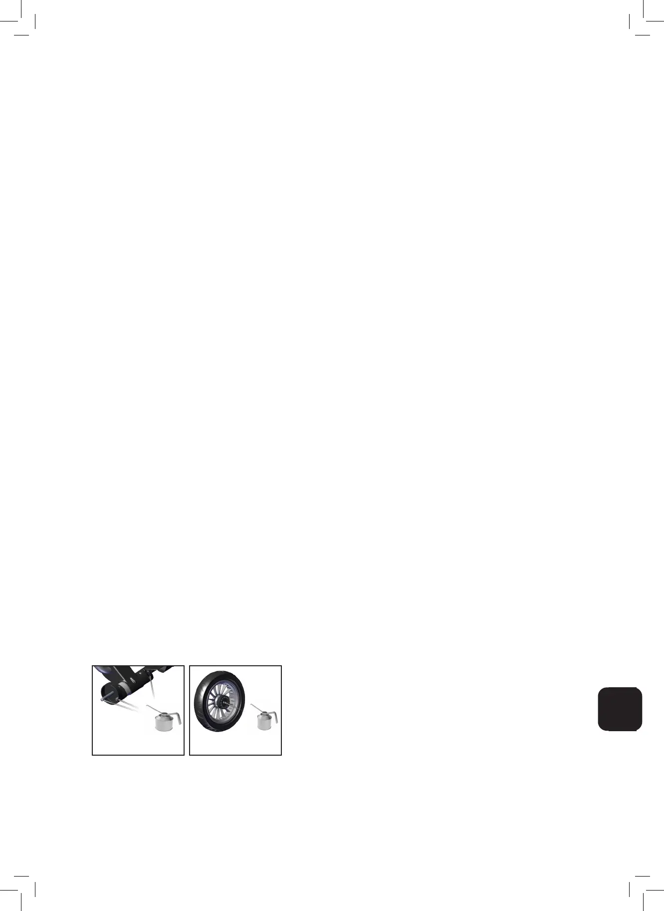 • Curățați regulat șasiul și piesele metalice ale vehiculului, uscați și lubriați toate articulațiile. Spițele și