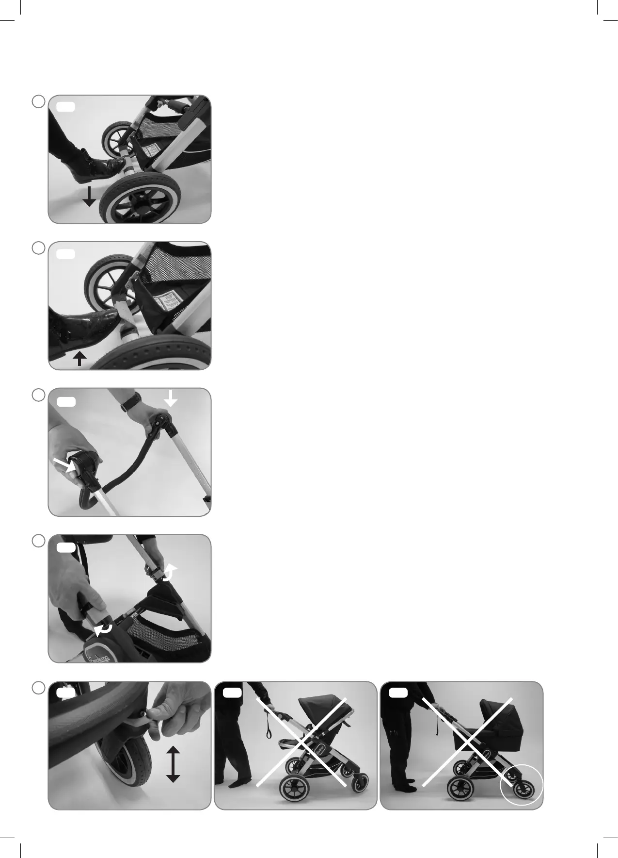 Emmaljunga NXT 60 - Removing Wheels; Brake Operation; Handlebar Adjustment; Front Wheel Options