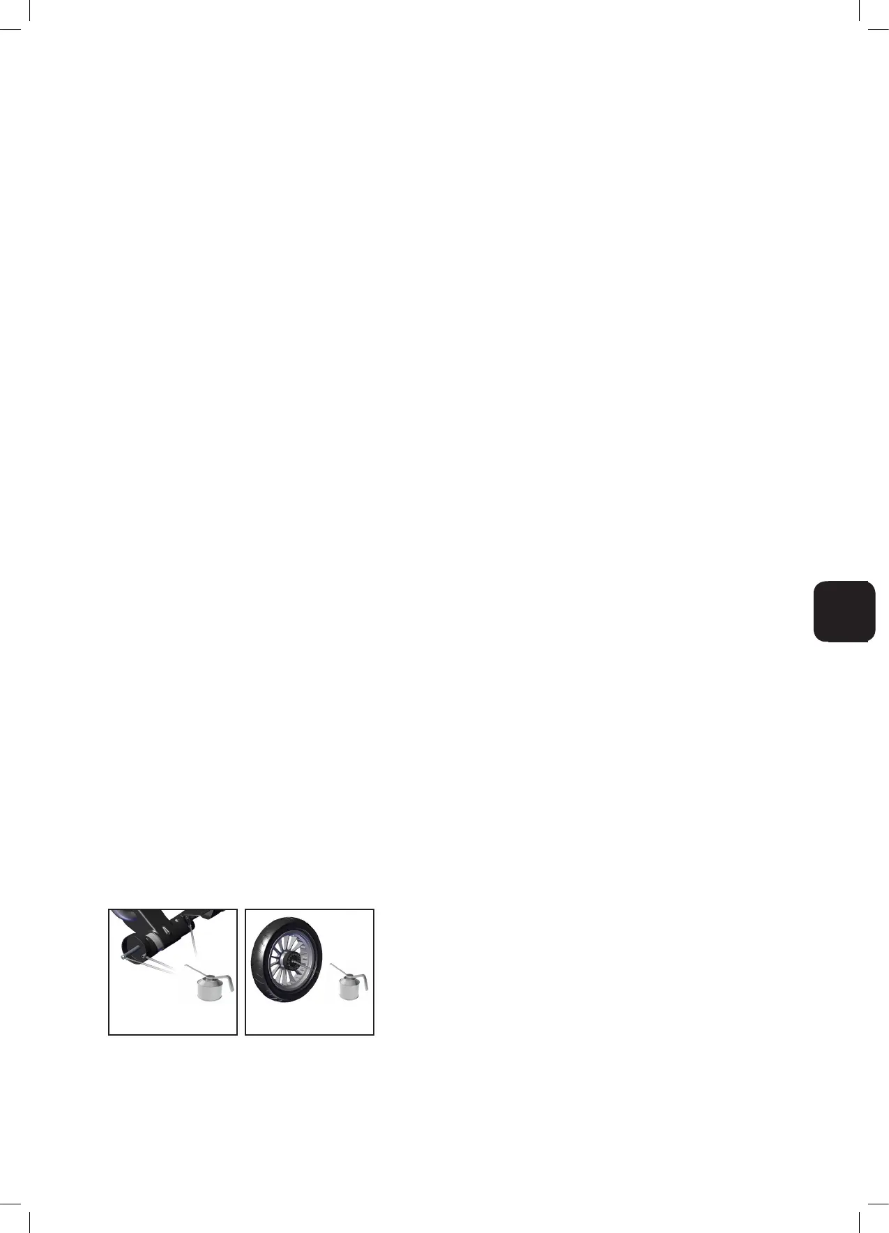 • Rengjør jevnlig undertellet og vognens metalldeler - tørk av de og smør alle ledd. Felger og eiker på alle