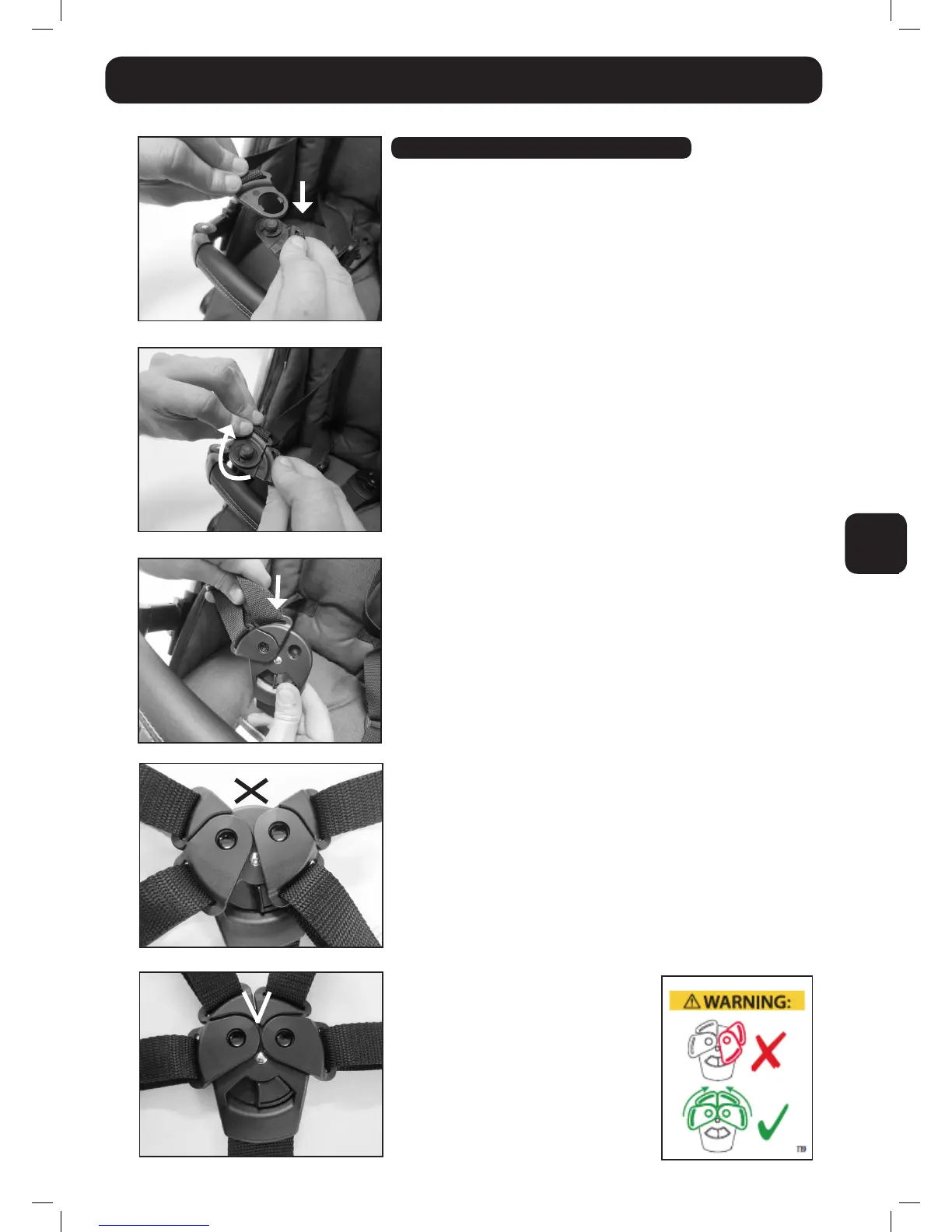 • Kontrollér at spænderne er låst i skridtstroppen.