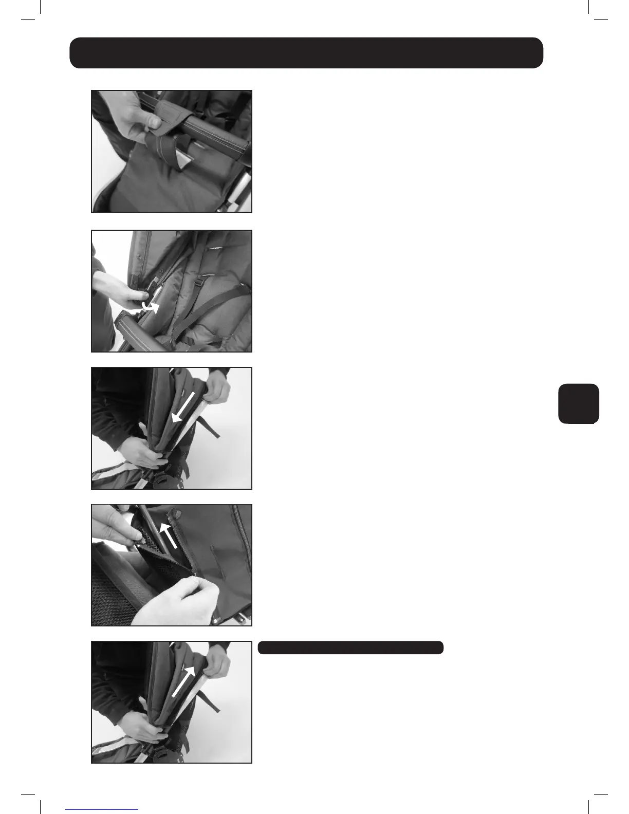 • Åpne glidelåsen på kalesjen og ta av sportsvognsdelen.