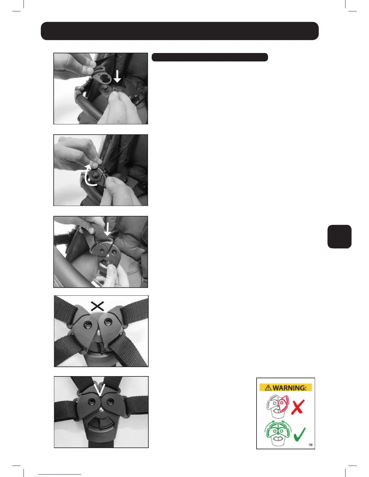 • Bruk alltid selen når barnet sitter i vognen. Sjekk alltid at alle