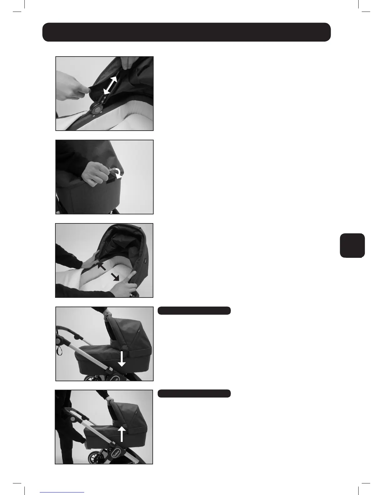• Kalesjetekstilen kan tas av eller festes rundt kalesjebøylen ved