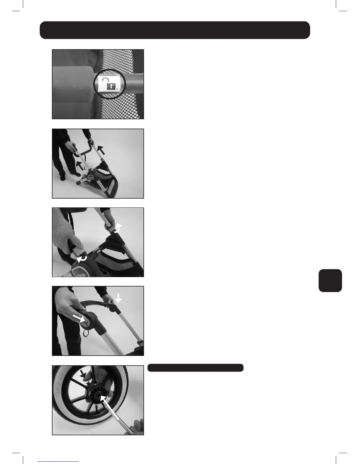 • Kui avatud tabaluku sümbol on nähtav, suruge vankriraami toru
