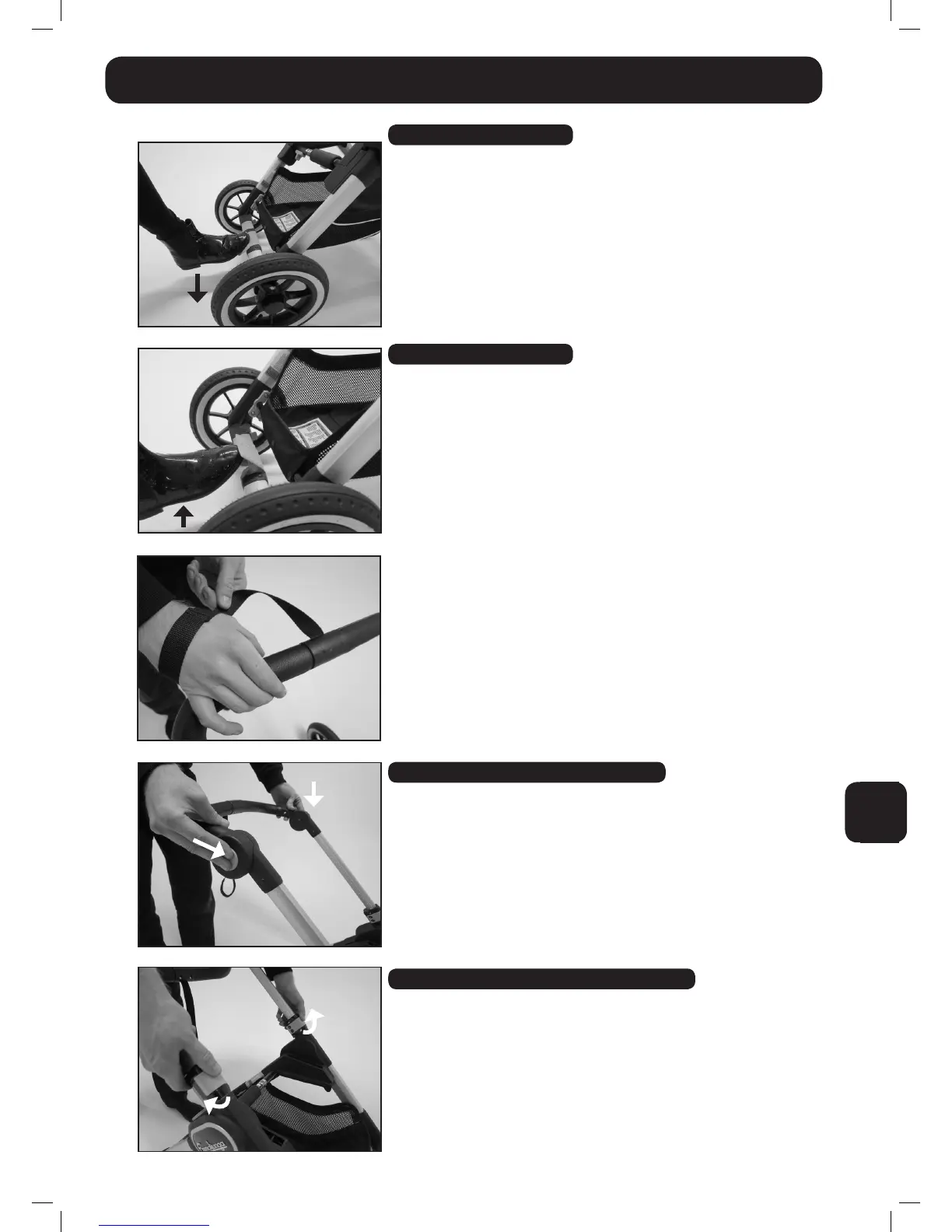 • Apturiet ratiņus, ar kāju nospiežot bremžu pedāli līdz galam.