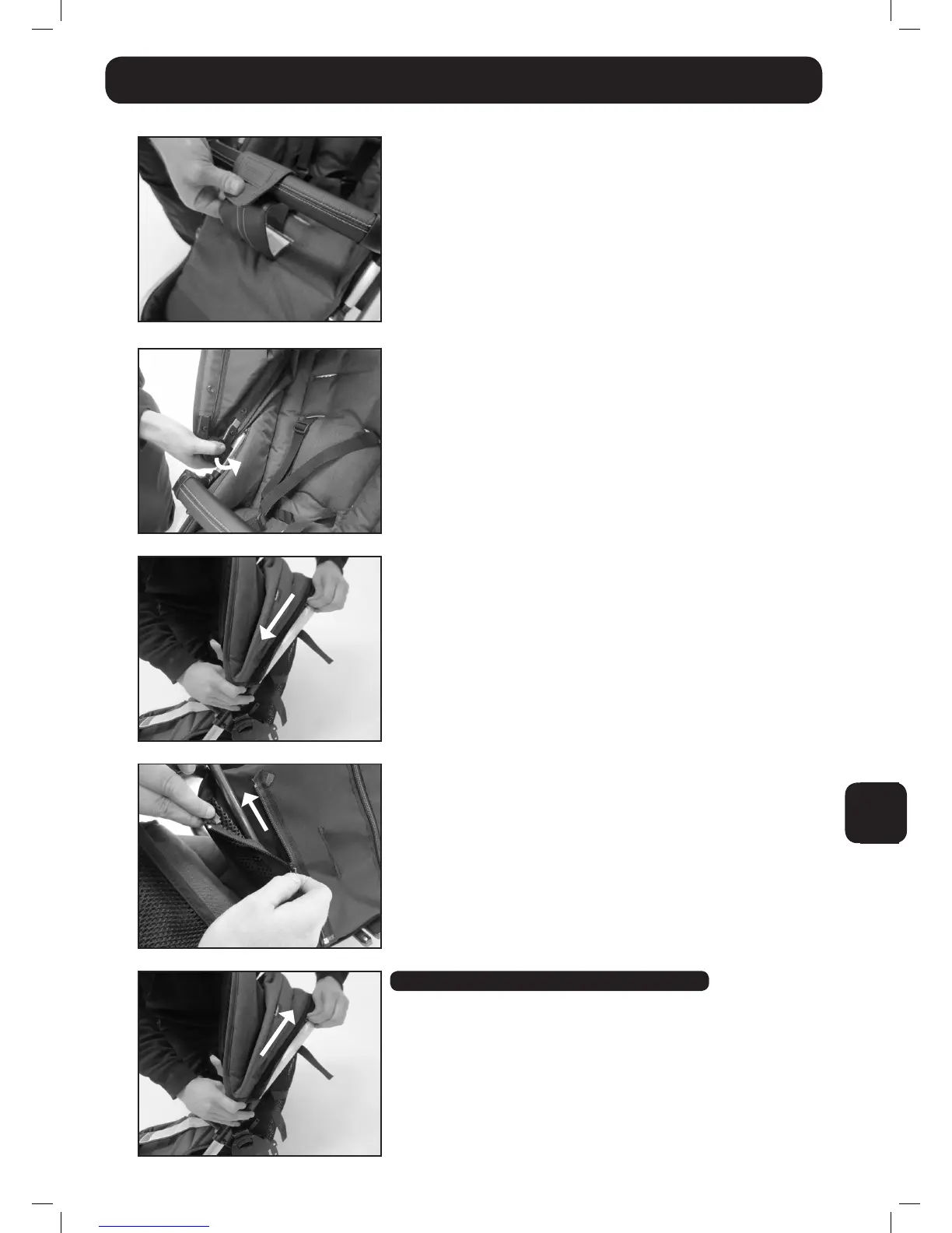 • Izvelciet roku paliktņus caur stiprinājumu sistēmu.