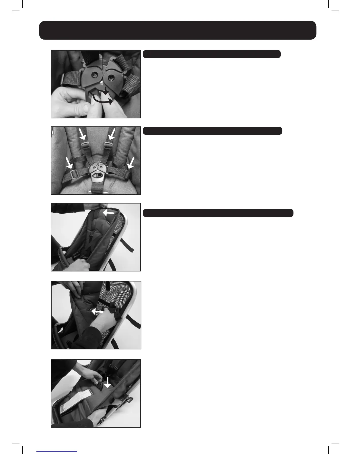 • Pilnībā izvelciet kājstarpes siksnu caur sēdekļa auduma